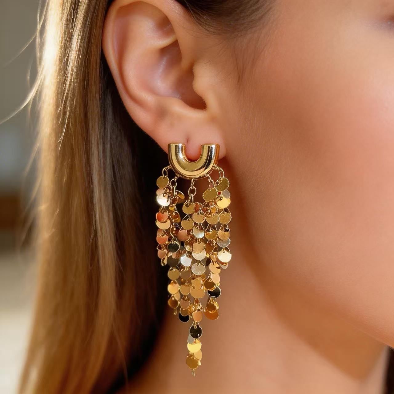 Shimmering gold meets an ivory gown, every turn bathed in spotlight